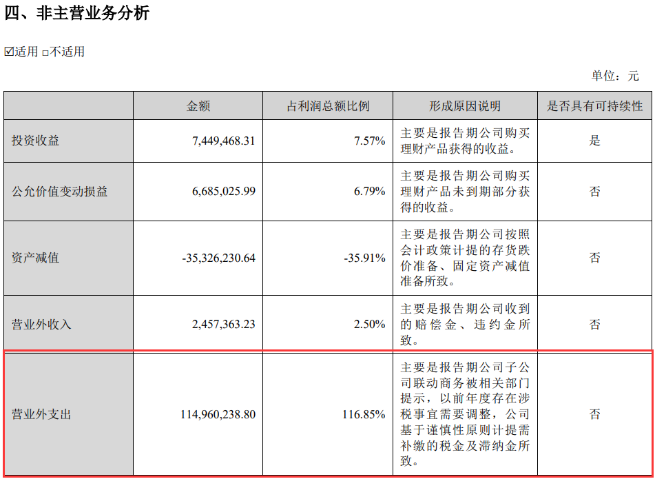 报告中提到了,经相关部门提示,全资子公司联动商务(支付牌照主体公司——联动优势电子商务有限公司)发现以前年度存在涉税事宜需要调整,需缴纳相关各项税费及滞纳金合计约1.1亿元。基于谨慎性原则,公司将上述相关税费及滞纳金计入2024年上半年当期损益。